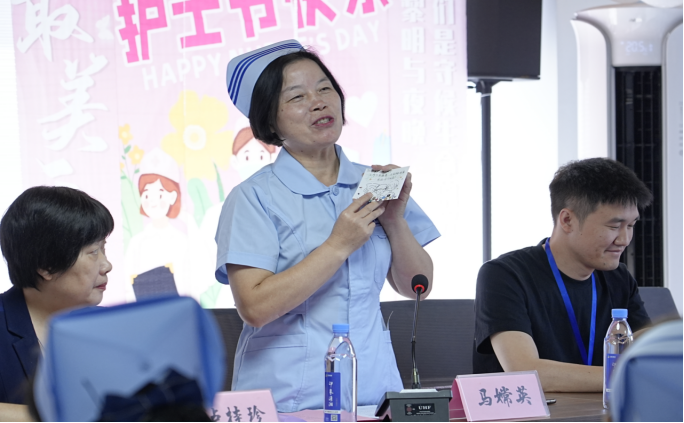 随后,马嫦英副院长分享了自己42年的护理工作经验。她深情讲述着在护理岗位上的点点滴滴,从初入行业的青涩,到面对患者时的坚守,再到见证生命奇迹的感动。她用亲身经历告诉学子们,护理不仅是一份职业,更是对生命的守护与担当,她的分享让在场师生深受触动。