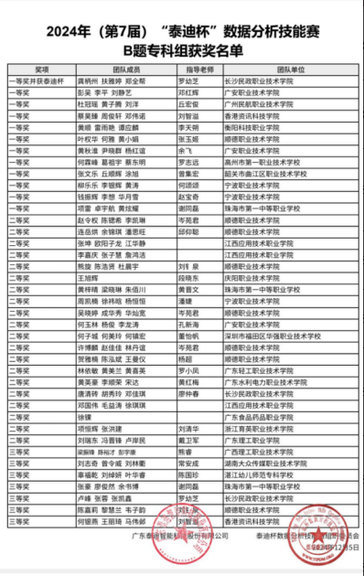 衡阳科技职业学院信息工程学子在2024年“泰迪杯”数据分析技能赛中斩获一等奖