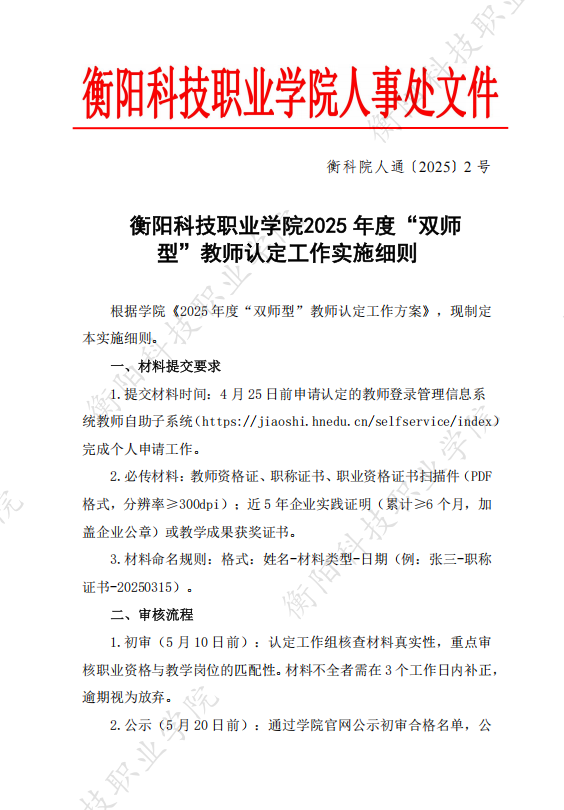 衡科院人通〔2025〕02号衡阳科技职业学院院2025年度双师型教师认定实施细则