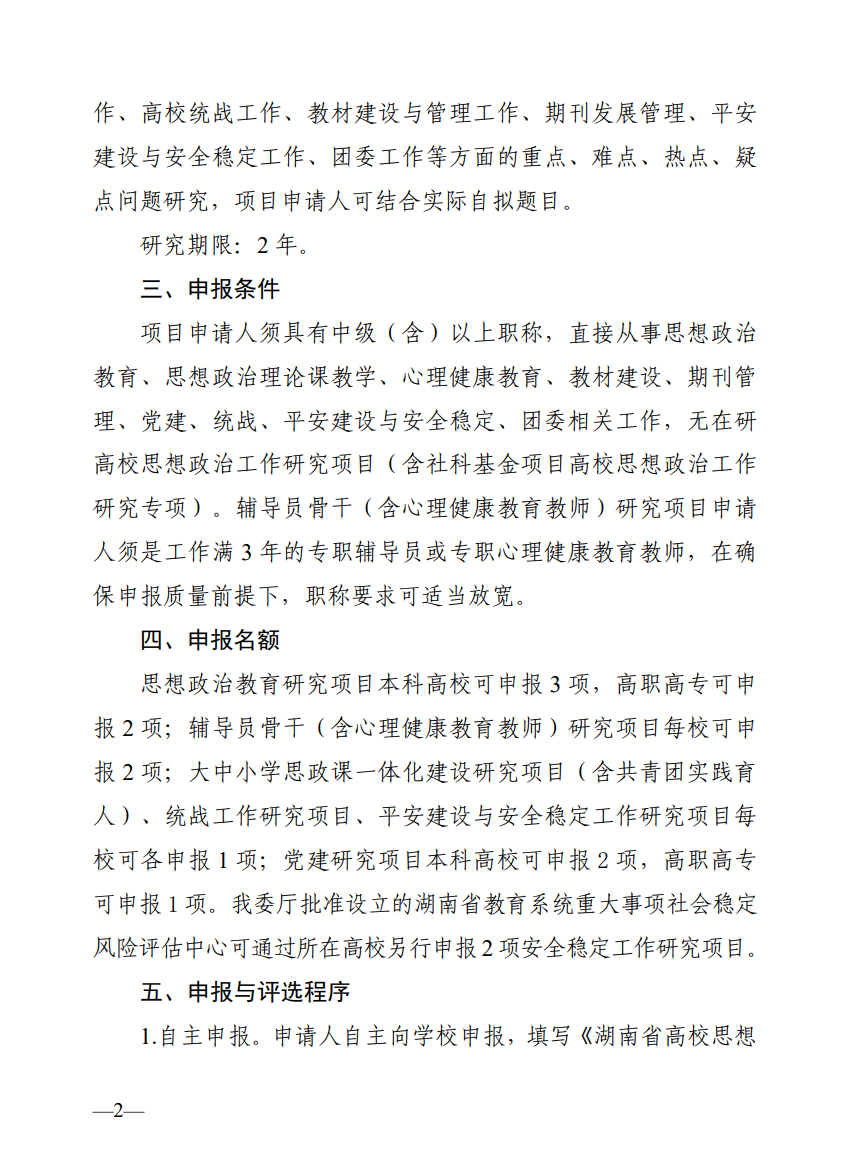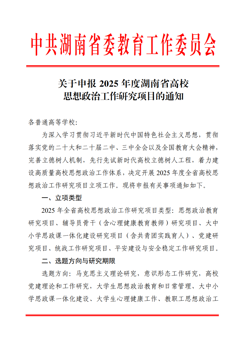 关于申报 2025 年度湖南省高校思想政治工作研究项目的通知