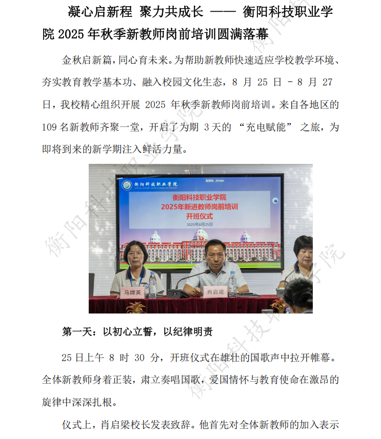 凝心启新程 聚力共成长 —— 衡阳科技职业学院2025年秋季新教师岗前培训圆满落幕