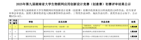 近日,2025 年湖南省大学生物联网竞赛初赛结果正式公布,衡阳科技职业学院在这场高规格赛事中表现亮眼:信息工程学院团队以优异成绩成功入围决赛,另有一支队伍斩获省三等奖,这一成绩充分彰显了学校在物联网专业建设与实践教学领域的扎实成效,以及学生过硬的创新实践能力。