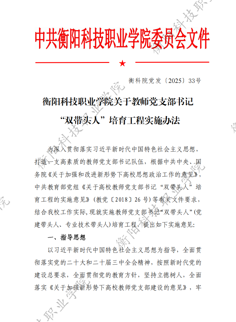 点击阅读源文件:衡阳科技职业学院关于教师党支部书记“双带头人”培育工程实施办法.pdf