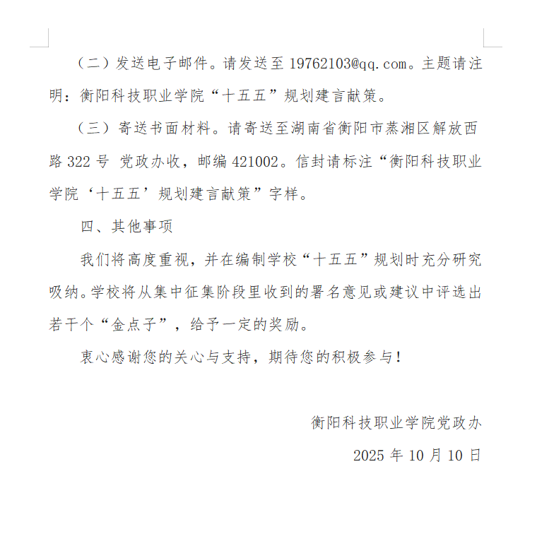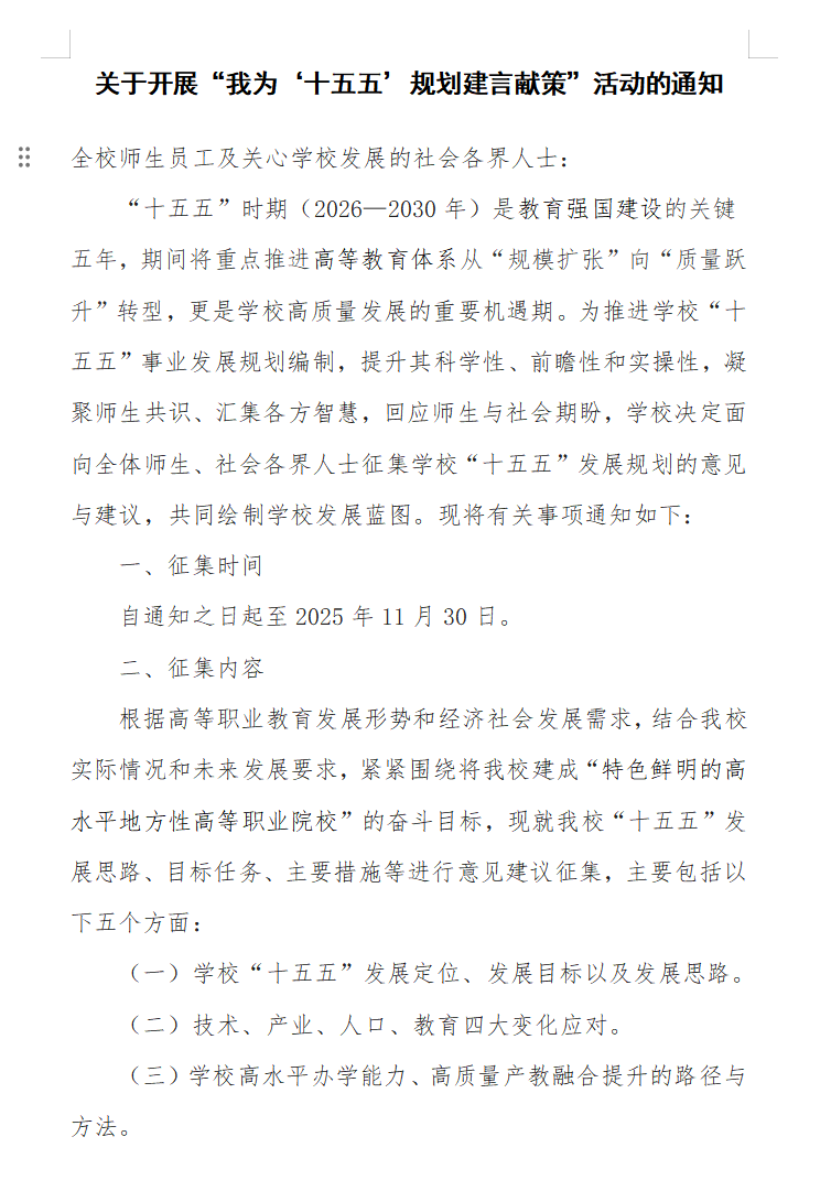 关于开展“我为‘十五五’规划建言献策”活动的通知