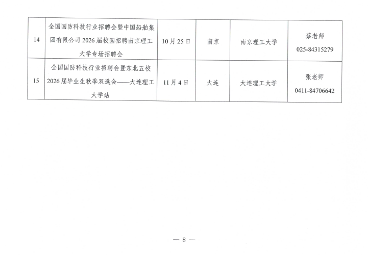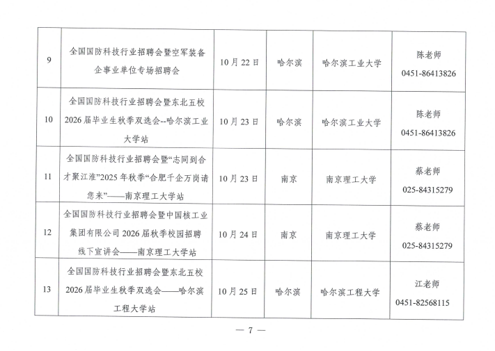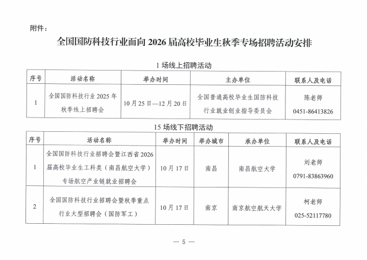 关于举办全国国防科技行业面向2026届高校毕业生秋季招聘活动的通知
