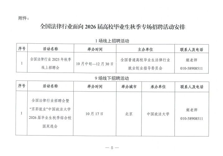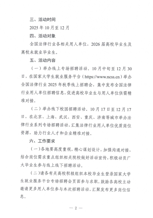 关于举办全国法律行业面向2026届高校毕业生秋季招聘活动的通知