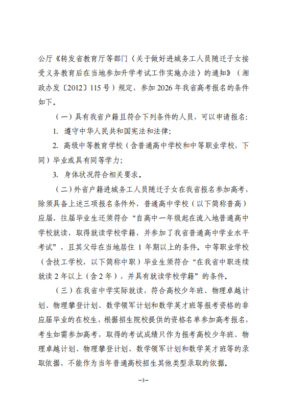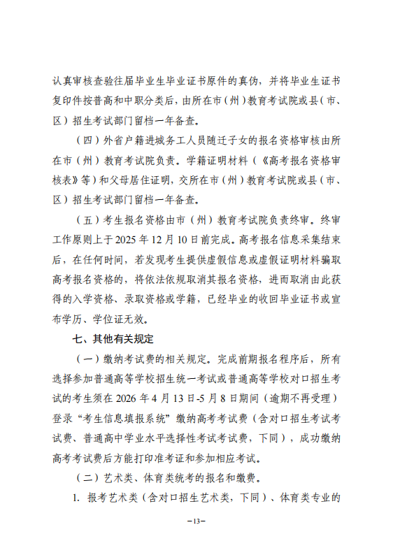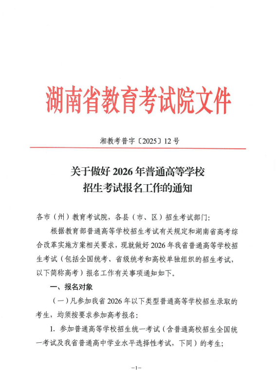关于做好2026年普通高等学校招生考试报名工作的通知