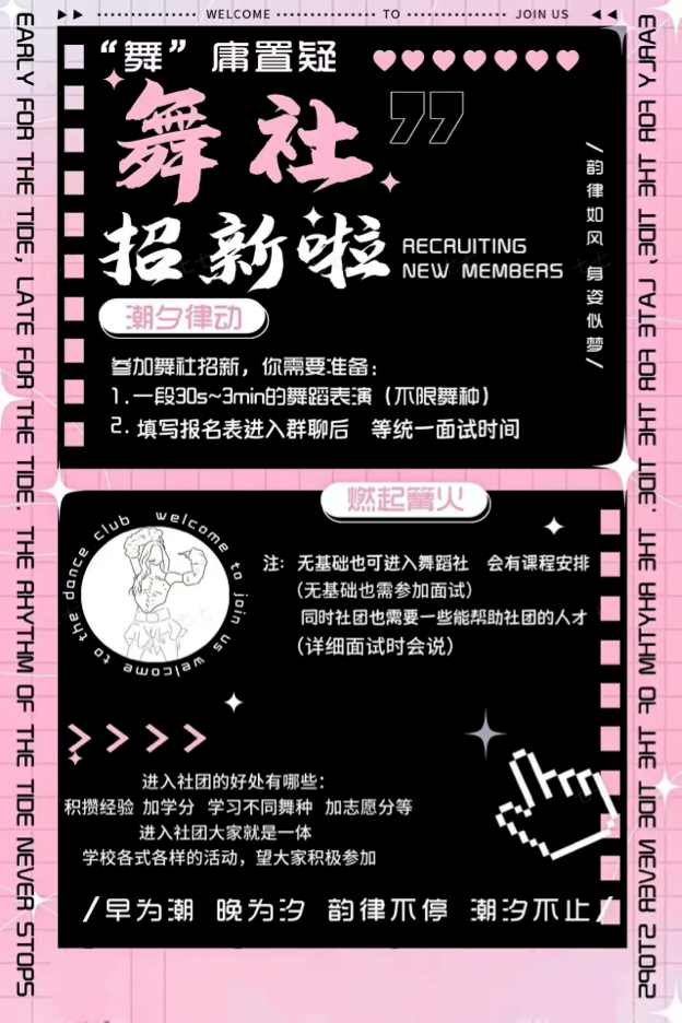 活动地点:13、14栋前坪同学们可以积极参与任务或游戏、完成任务或游戏者、集齐5个社团定制贴纸可兑换礼品!