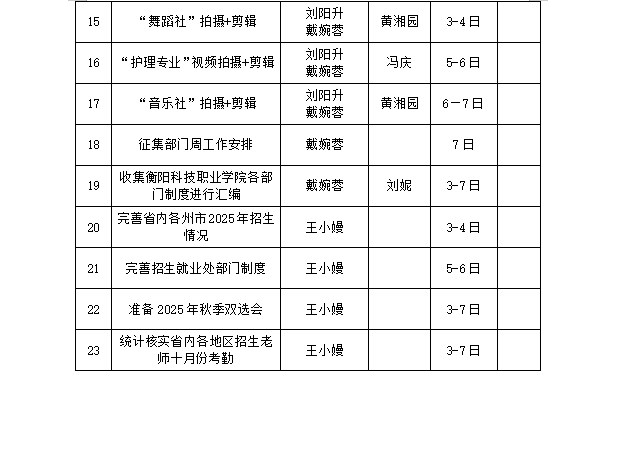 衡阳科技职业学院党政办、宣传部 第十周工作安排(10月26日-11月1日)