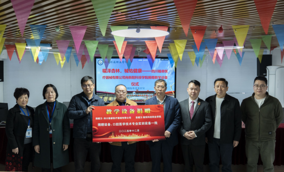 衡阳科技职业学院党委书记彭志忠、常务副校长肖启梁等校领导,与四川福睿医疗器械有限公司董事长胡天友、中玒口腔创始人兼院长欧阳志强、工程师肖力平等捐赠方代表共同出席了仪式。学校医药卫生学院、教务处、实训中心相关负责人及师生代表一同见证了这一重要时刻。