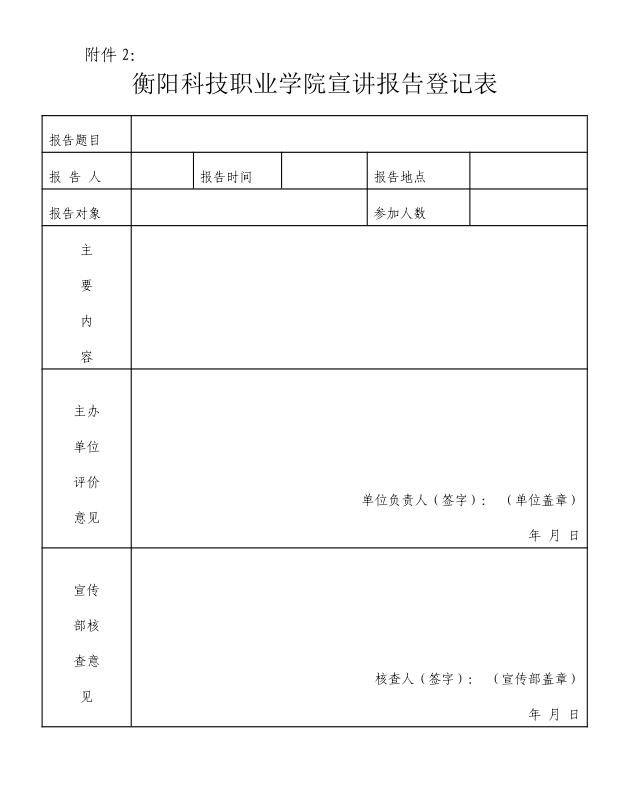 附件二:衡阳科技职业学院宣讲报告登记表.docx