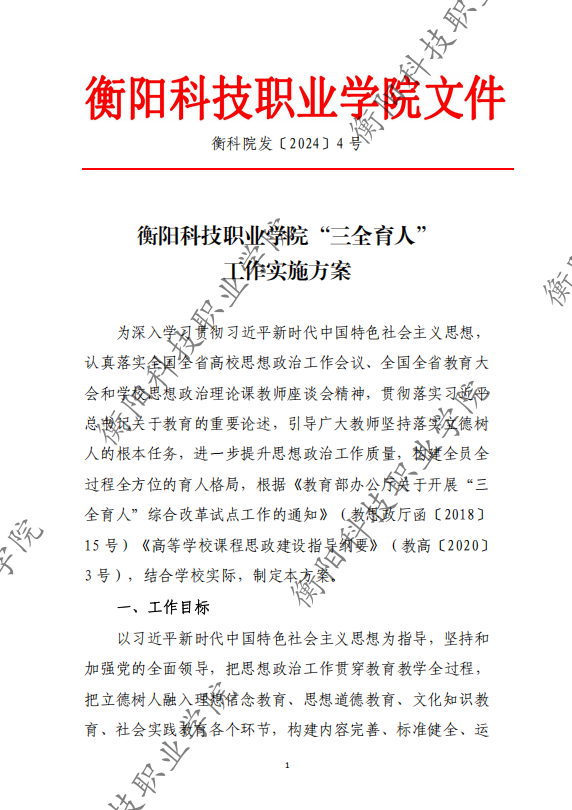衡阳科技职业学院“三全育人” 工作实施方案